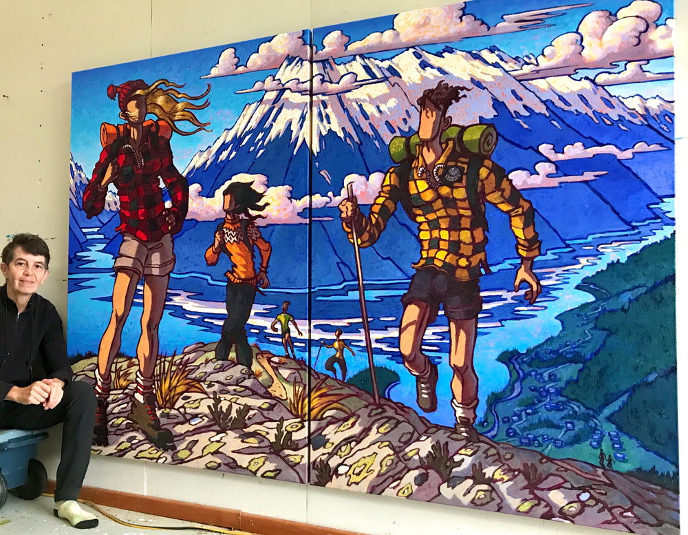 A recent commission painting of Queenstown Hill. Artistic licence was used in fitting in the background, but as always in my work, it’s the feeling of the moment that matters. I was quite pleased how I managed to capture the crisp mountain air and breathtaking scenery, without losing the spontaneous line drawing that forms the basis of keeping the painting dynamic and alive.